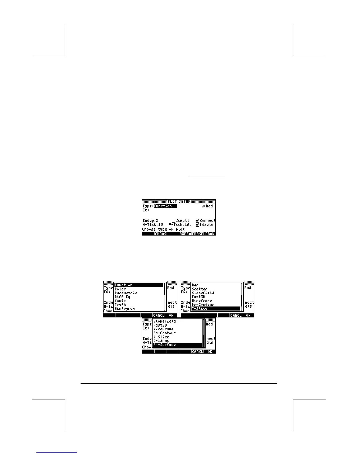 list of available graph types, press the soft menu key labeled @CHOOS. This will