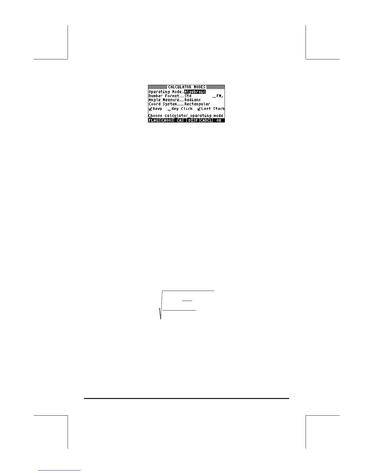 Reverse Polish Notation (RPN) mode. The default mode is the Algebraic