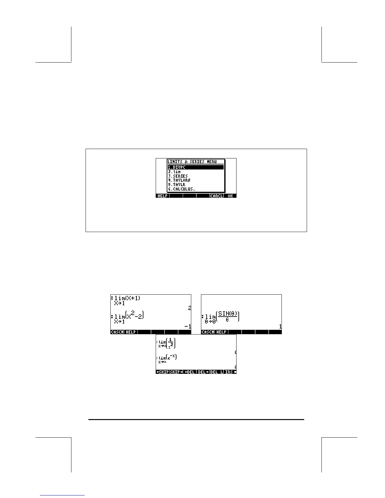 Note: The functions available in the LIMITS & SERIES menu are shown next:
