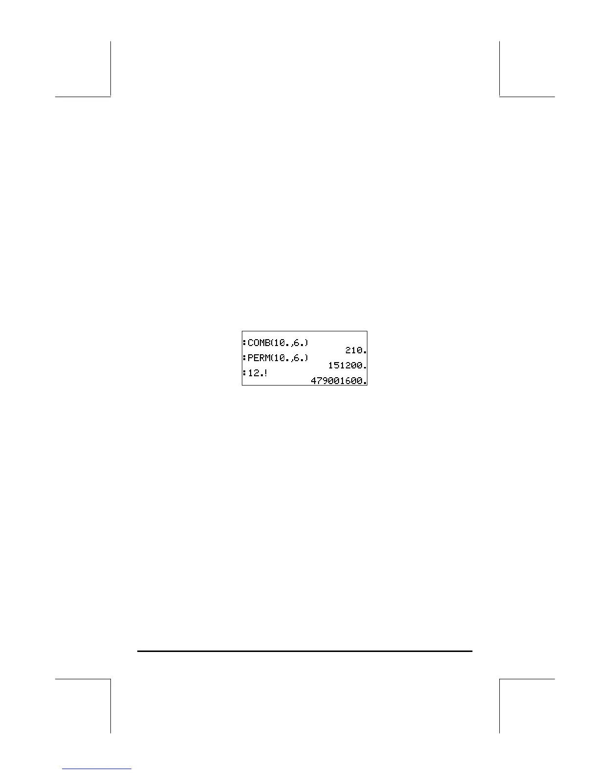 COMB, PERM, and ! from the MTH/PROBABILITY.. sub-menu. The operation