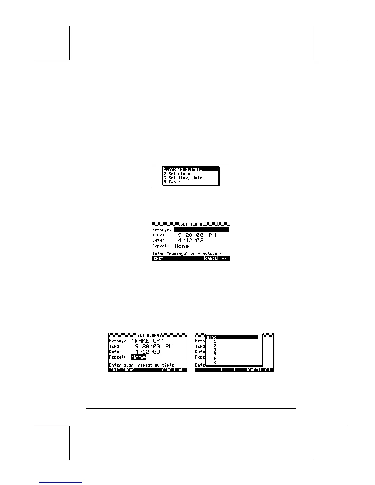 alarm. The Time: field lets you enter the time for activating the alarm. The