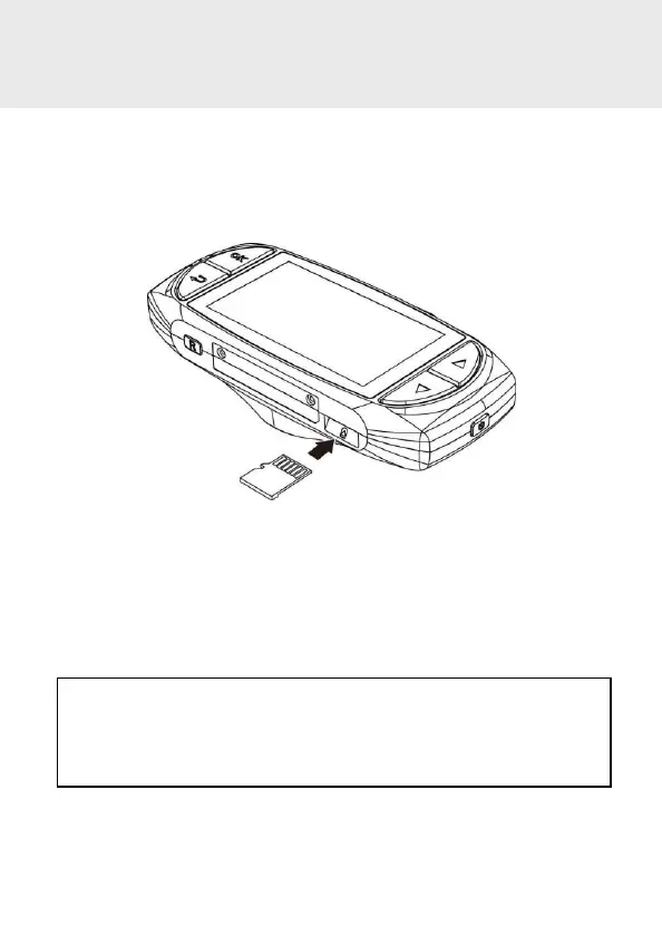 Gắn thẻ nhớ với mặt pins hướng về trước cùng với hướng của mặt màn
