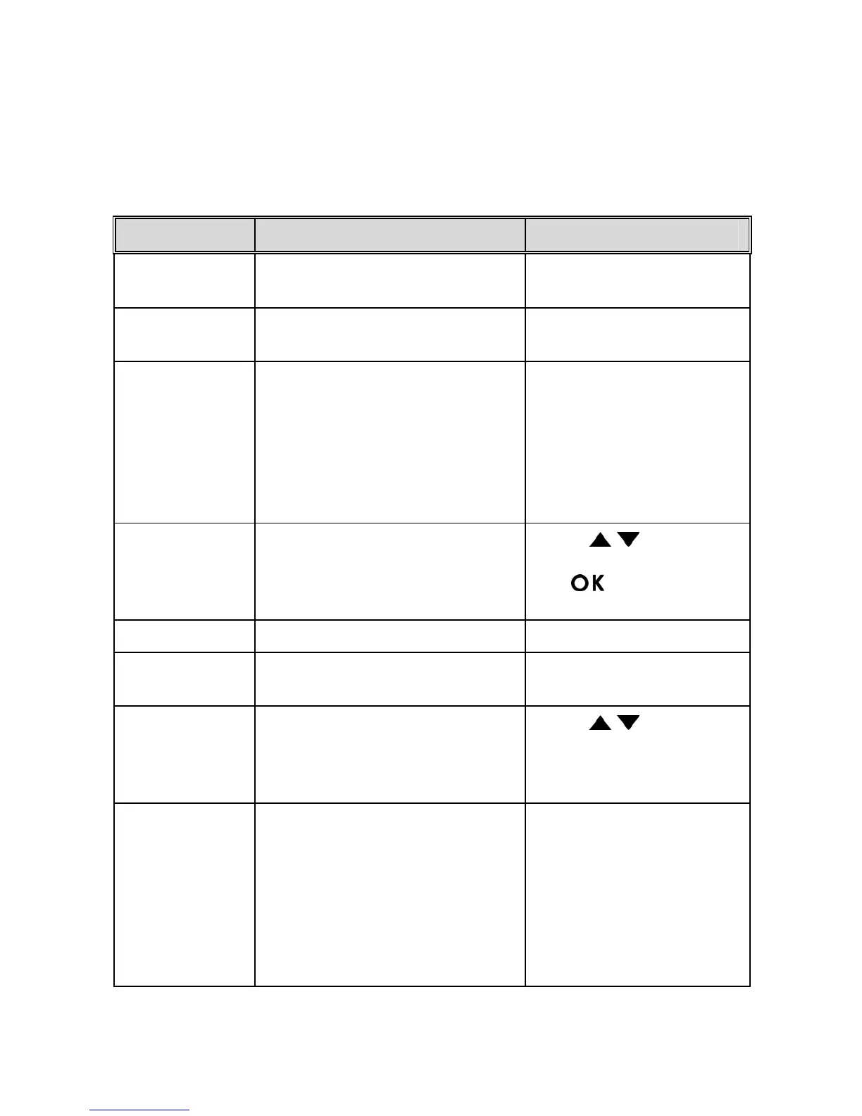 Refer to the below table for details on menu items and available menu