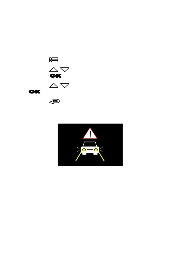 2. Press the / button to select Headlight Warning, and then