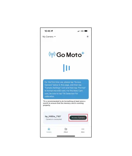 Tap “Access Camera” to enter main screen for set up and operate