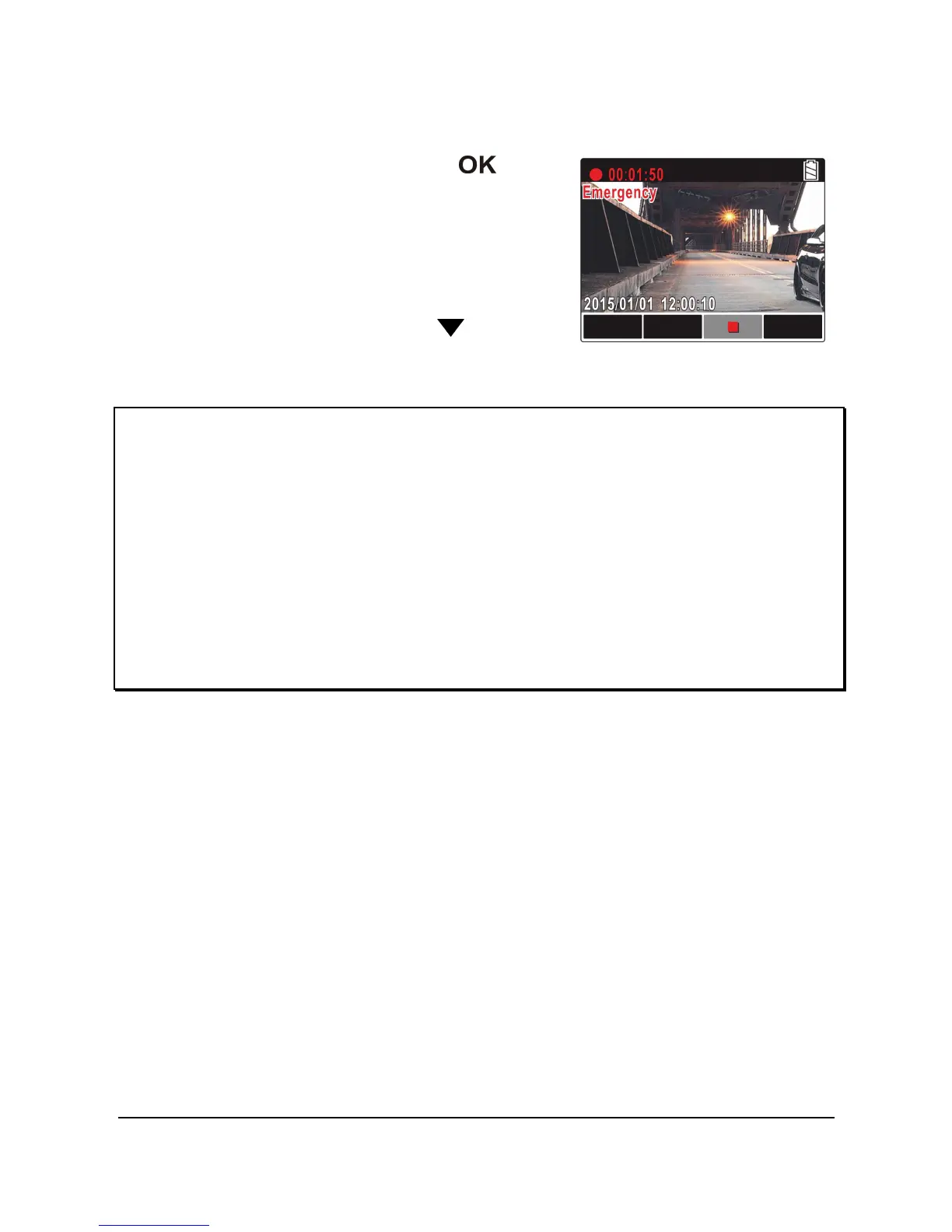 on the screen when the emergency recording files are full. You will need to manually
