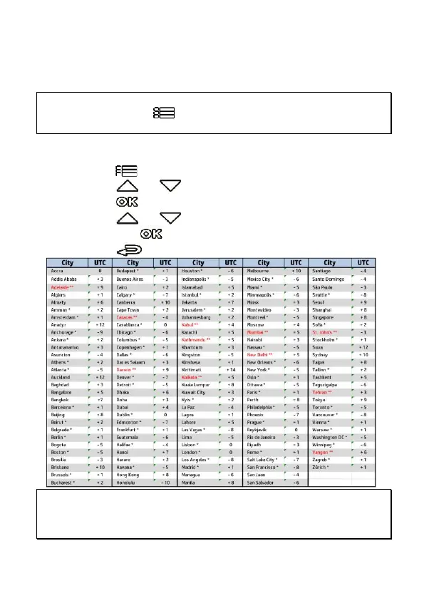Press the or button to set the current time zone, and