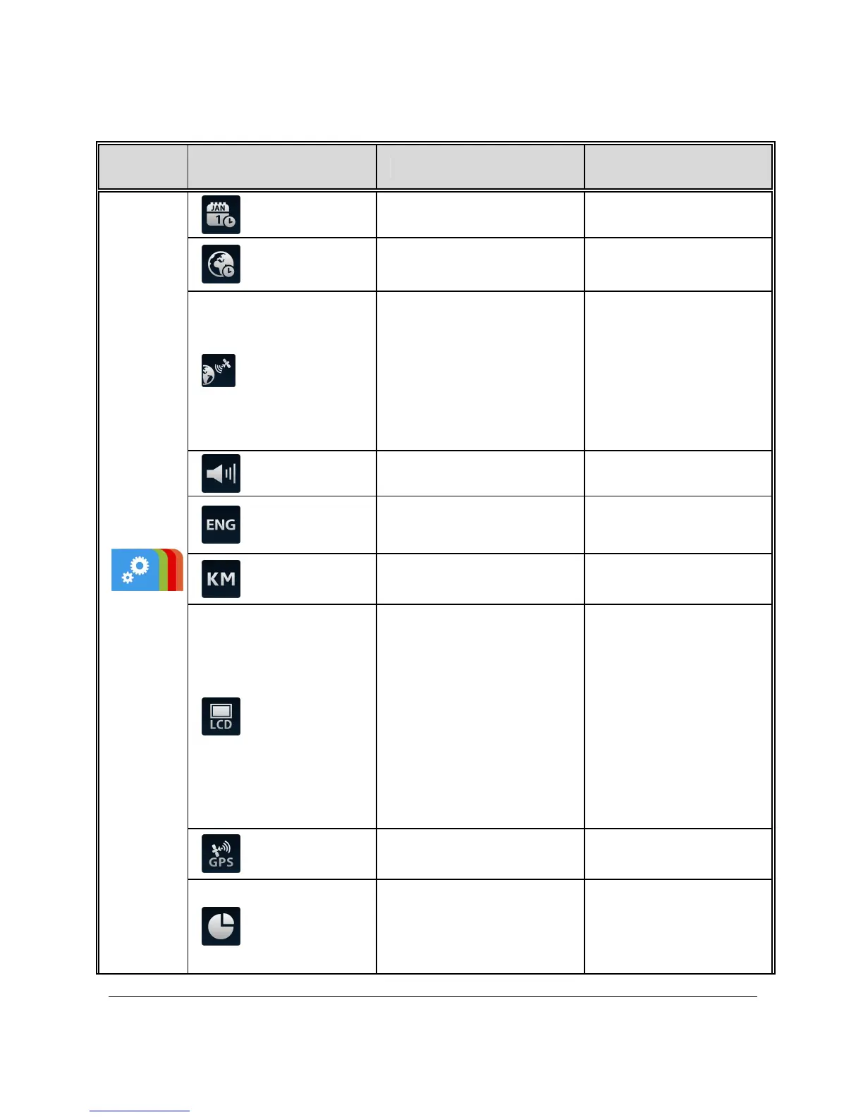 Refer to the below table for details of main menu and function list.