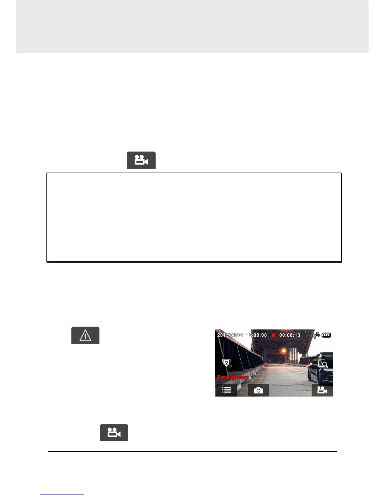 The camcorder will record an emergency video of 3 or 5 minutes