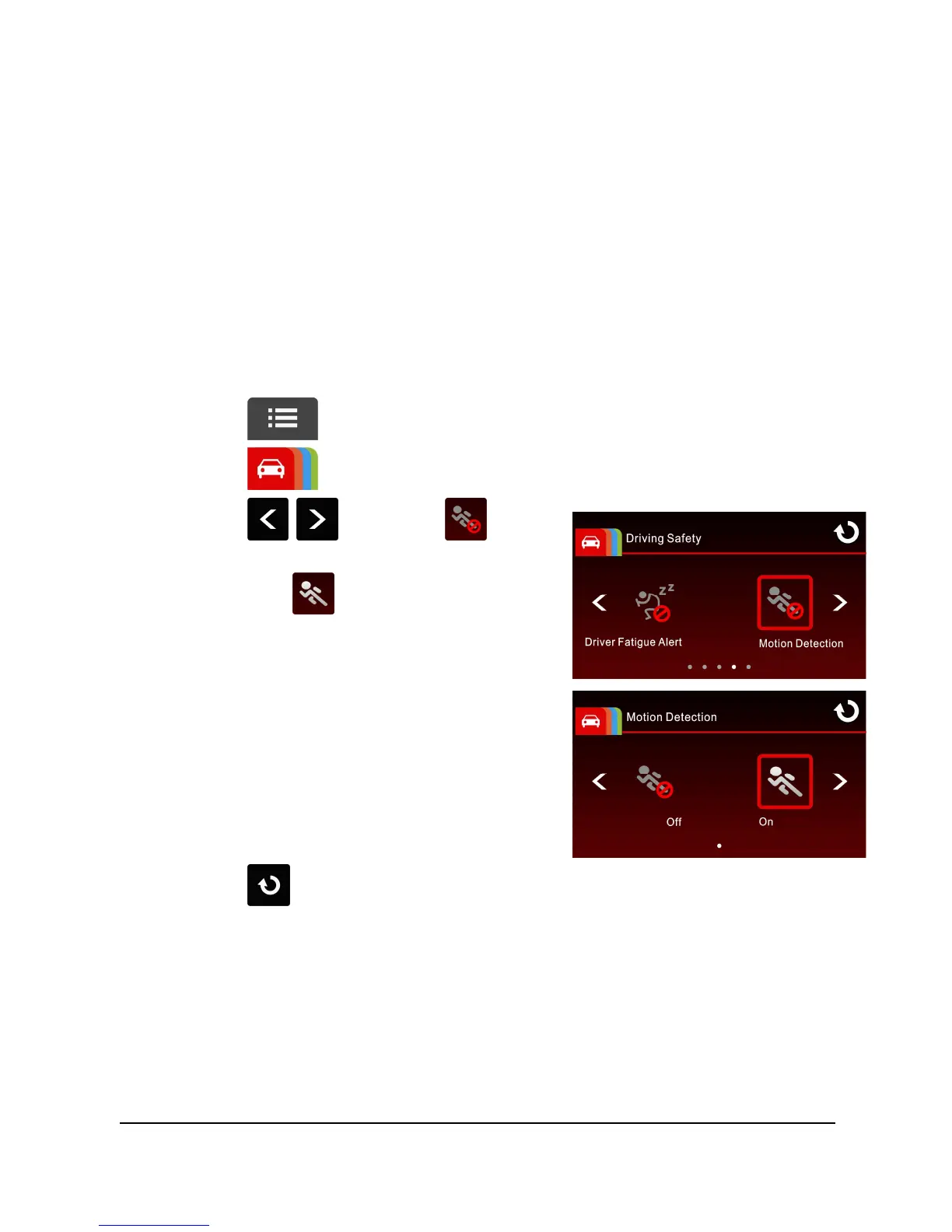 2. Touch to switch over to Driving Safety Main Menu.