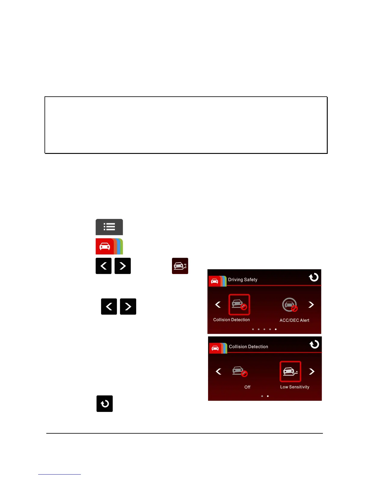 2. Touch to switch over to Driving Safety Main Menu.