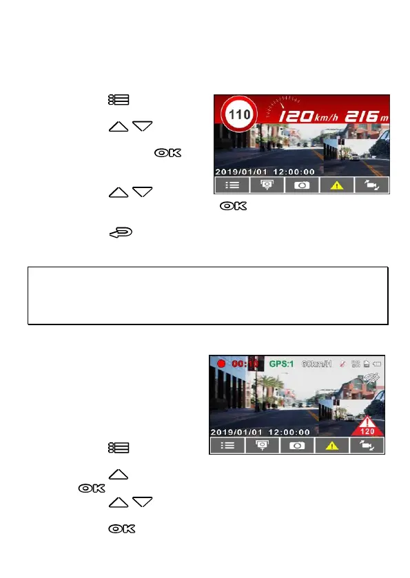 3. Press the / button to set up a Speed Limit Alert to trigger