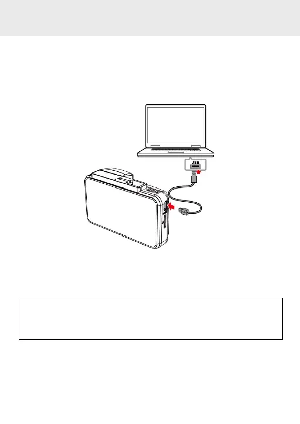 1. Connect mini USB cable to the camcorder mini USB port.