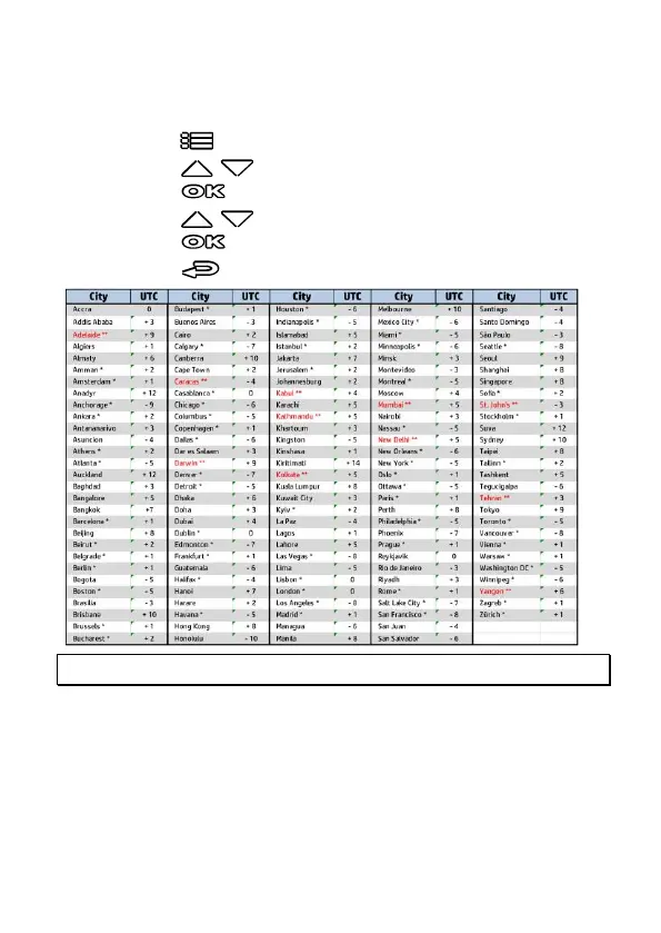 3. Press the / button to set the current time zone, and then