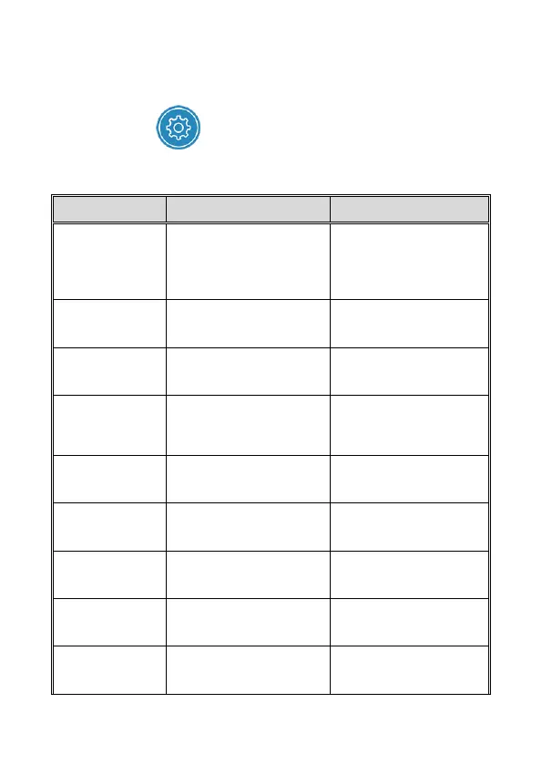 2. Refer to the below table for details of menu items and available