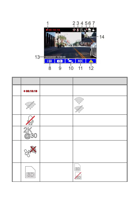 Recording Duration Indicates the video current duration.