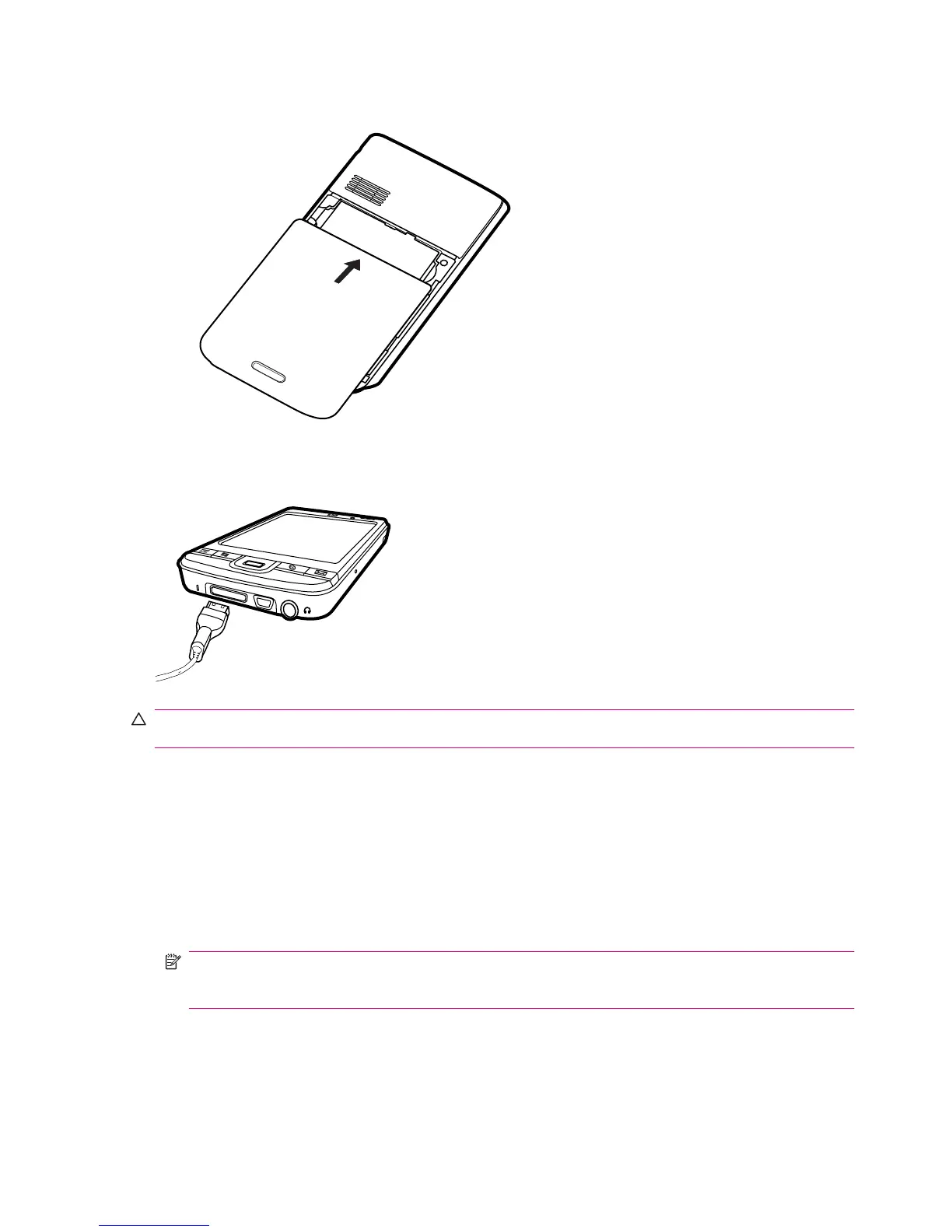 CAUTION: To avoid damaging your HP iPAQ or the AC adapter, make sure all connectors are properly
