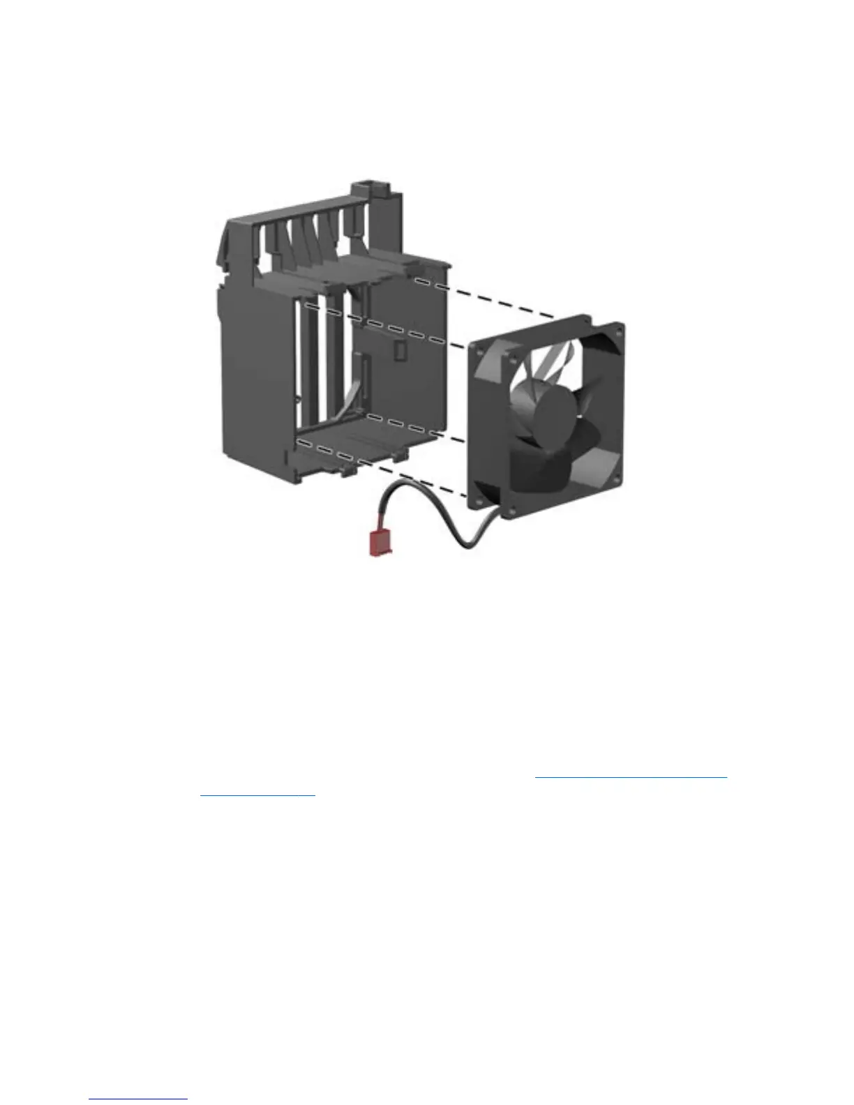 Insert the fan unit into the fan holder/card guide. Align the fan with the label facing inward. If an