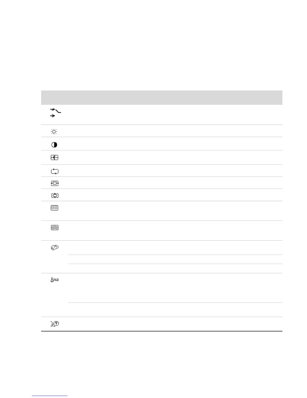 The following table lists the On-Screen Display (OSD) menu selections and their functional descriptions. After changing