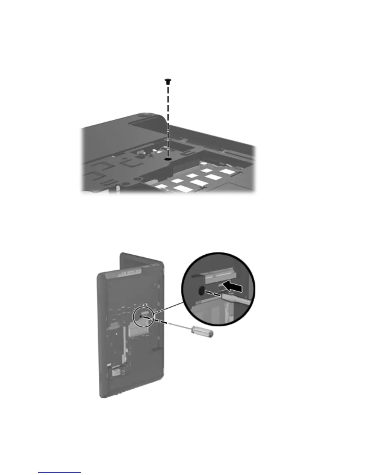 4. Insert a screw driver or similar thin tool into the keyboard screw hole, and then press on the back