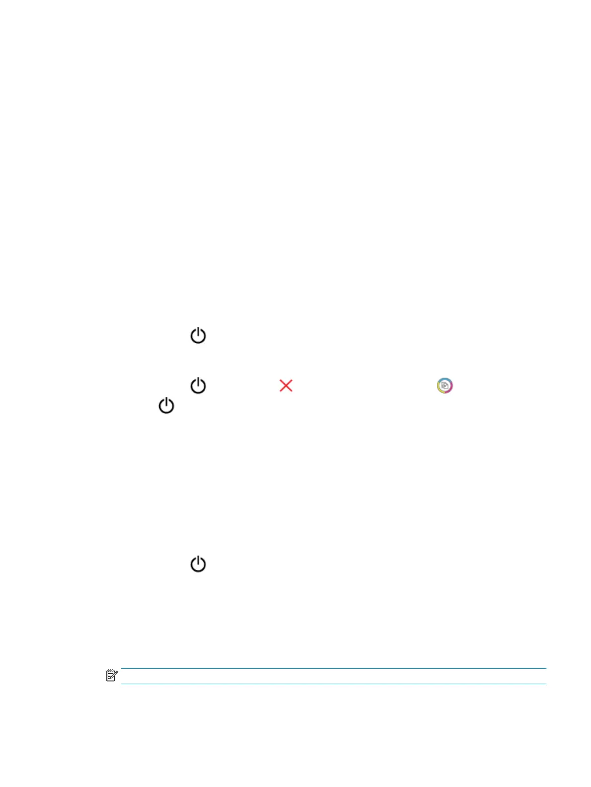 按住 電源 按鈕 ( ),按 取消 按鈕 ( ) 三次,按 開始影印/彩色 按鈕 ( ) 七次,然後鬆開 電
