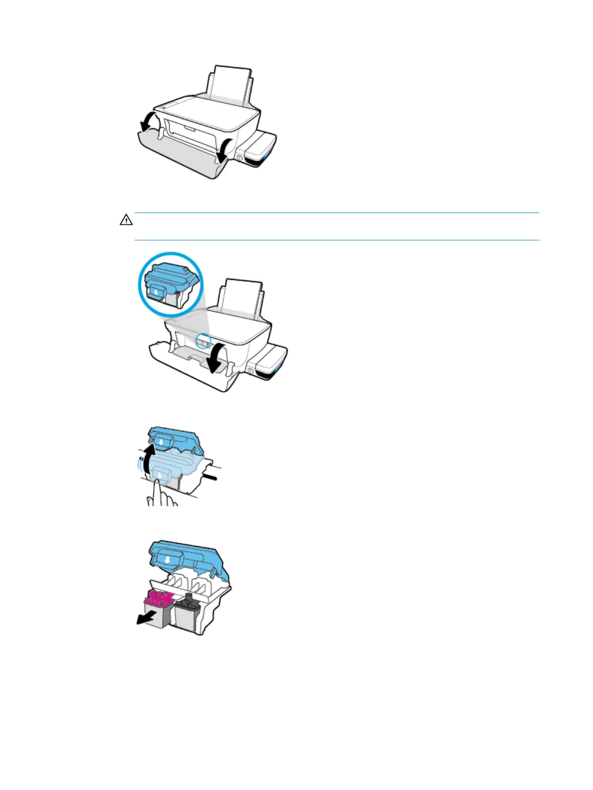 c. 向下推開藍色列印頭卡榫。