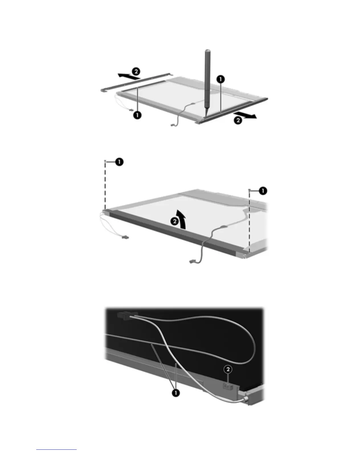 11. Remove the screws 1 that secure the backlight cover to the display panel.