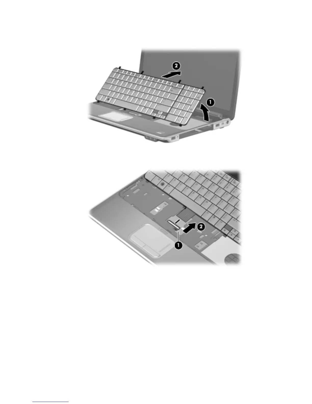 6. Lift the rear edge of the keyboard 1 until it rests at an angle.