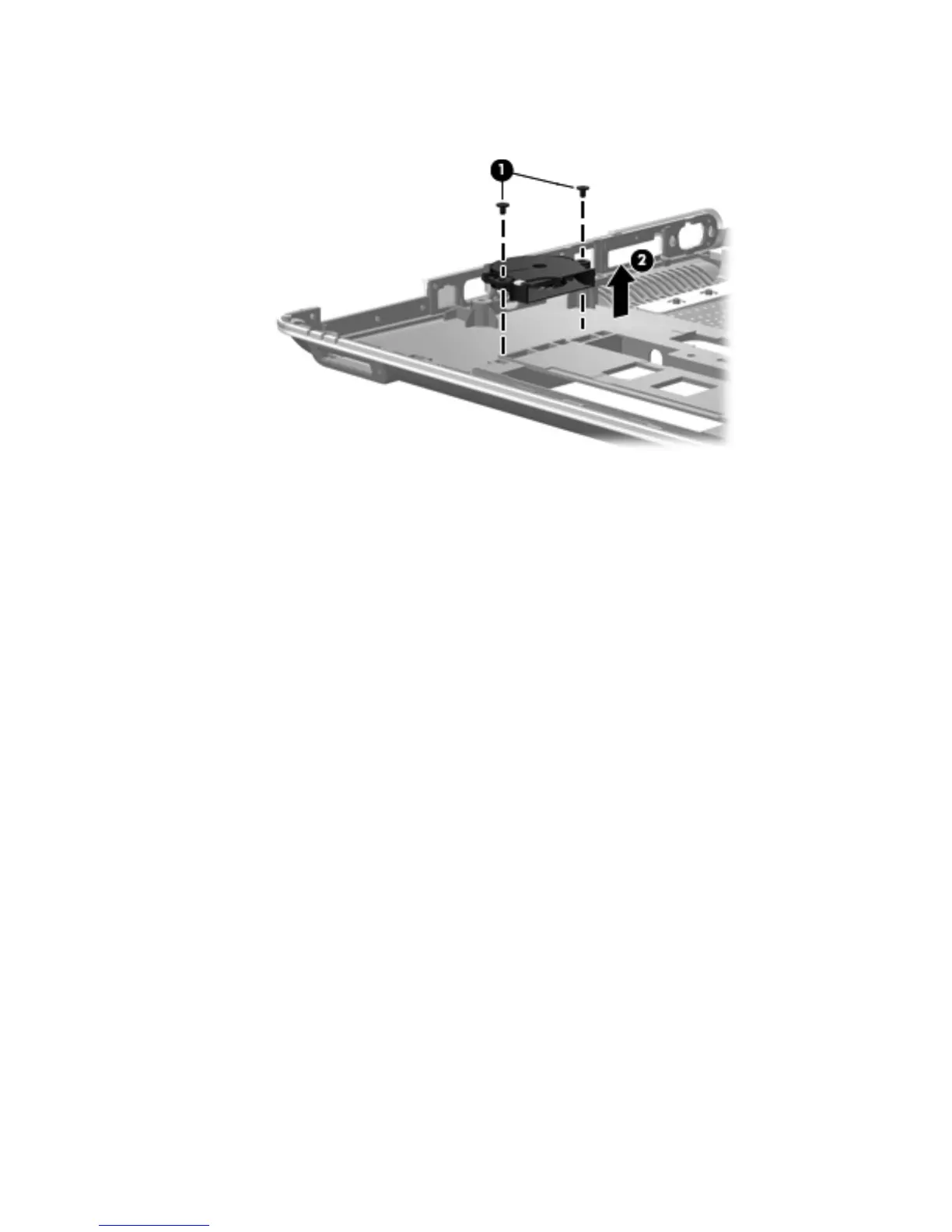 1. Remove the two Phillips PM2.0×4.0 screws 1 that secure the fan to the base enclosure.