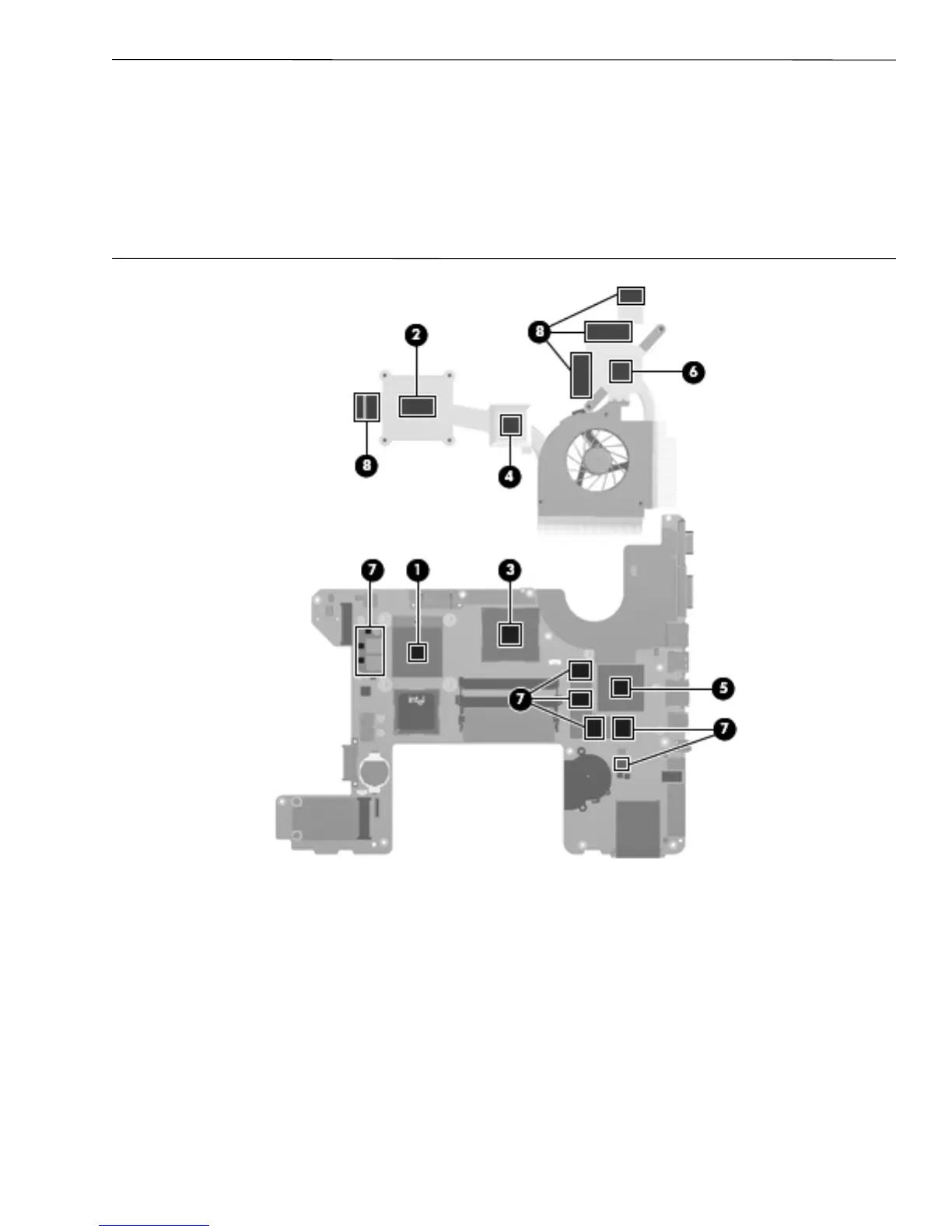 ■ Thermal pads are used on various other system board components 5 and 7, and the sections of the