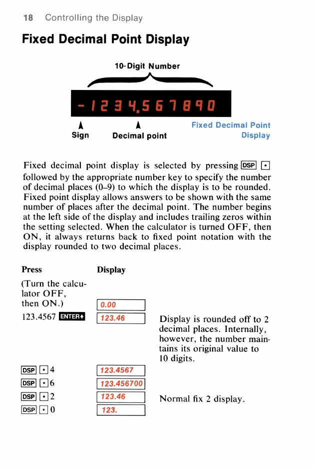 HP HP-21 - Fixed Decimal Point Display