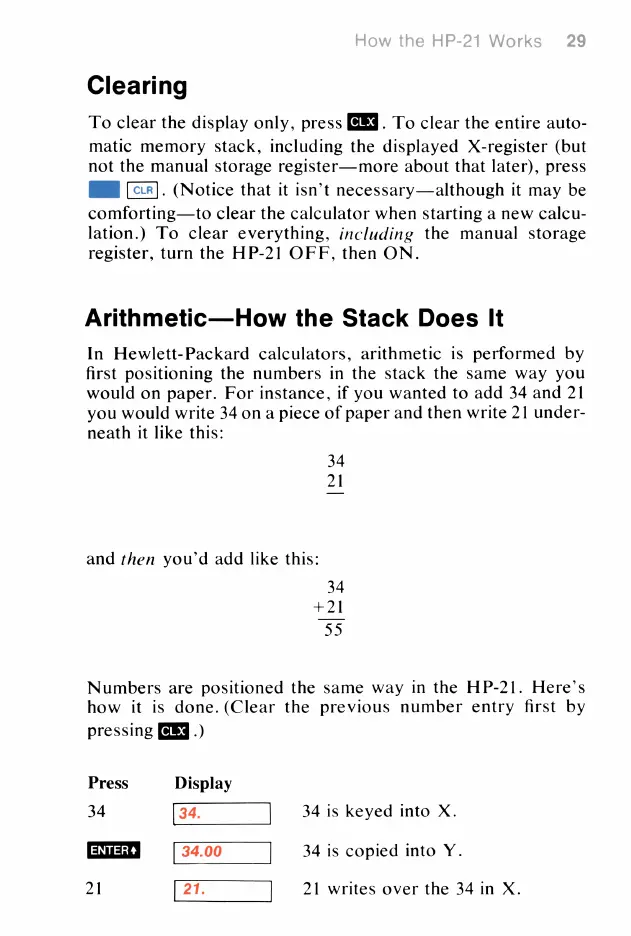 HP HP-21 - Clearing; Arithmetic-How the Stack Does It