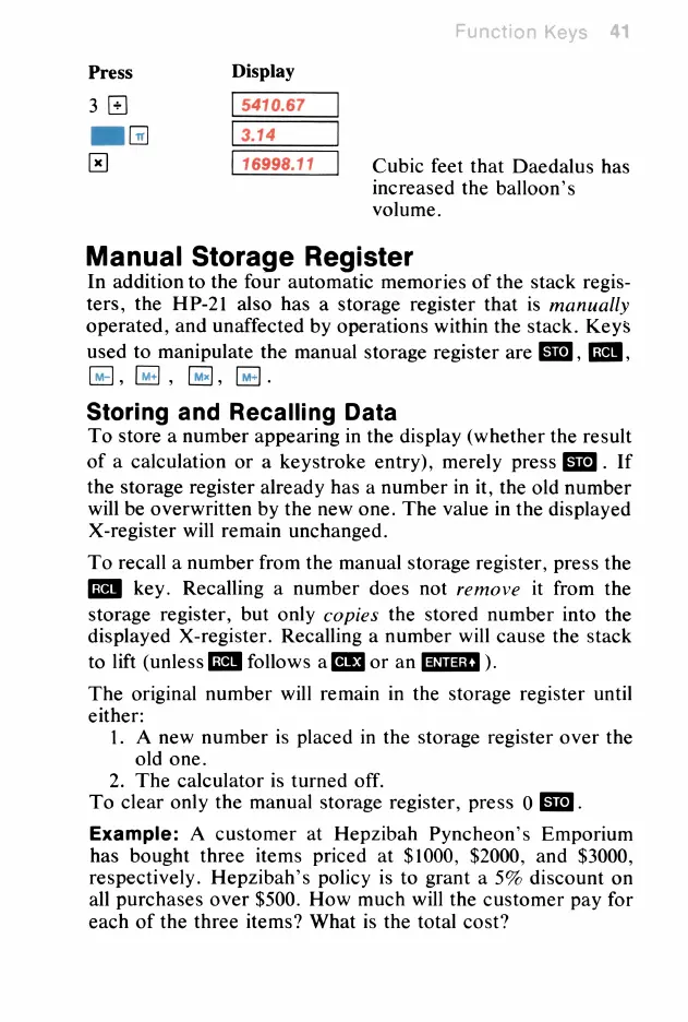 HP HP-21 - Manual Storage Register; Storing and Recallingdata