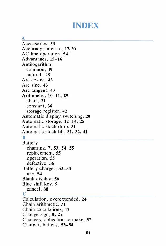 HP HP-21 - Index