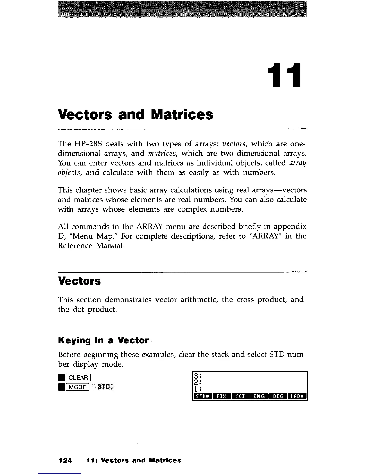 HP HP-28S - Vectors and Matrices; Keying in a Vector