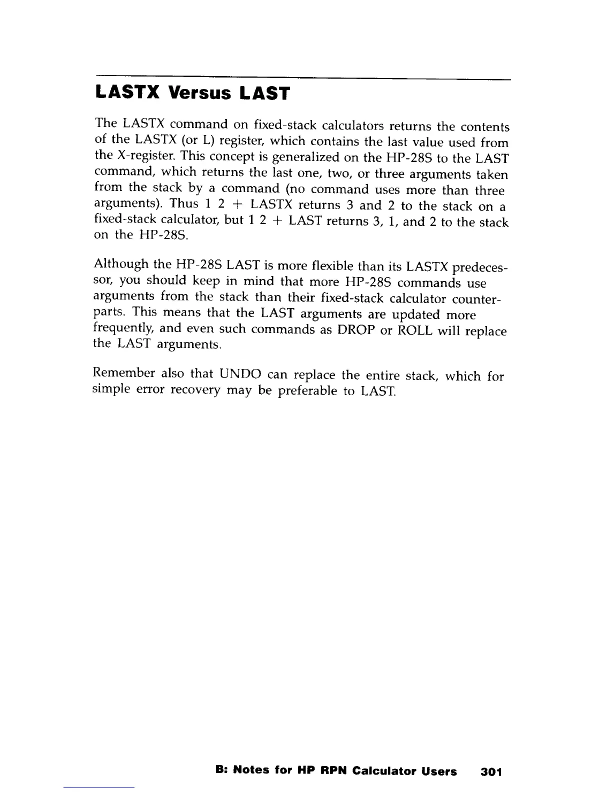 HP HP-28S - LASTX Versus LAST