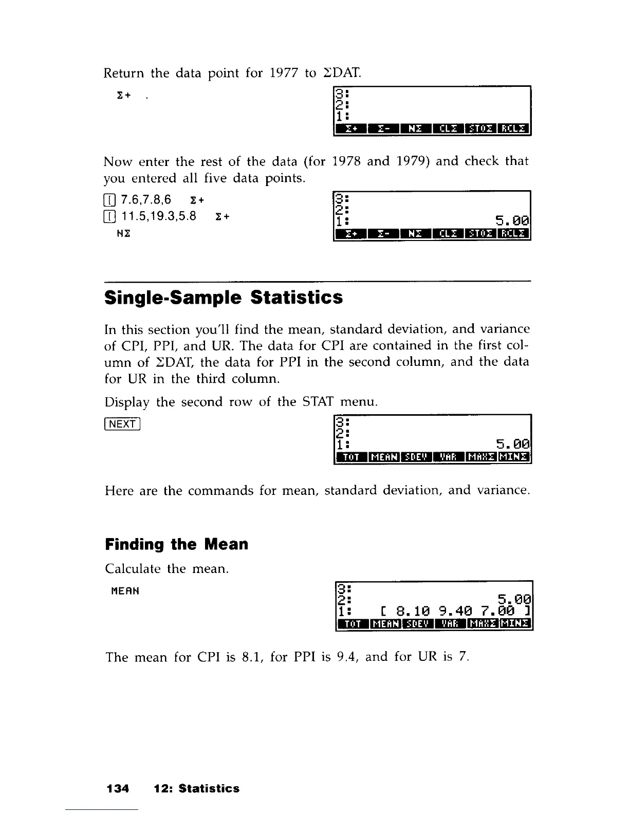 HP HP-28S - Single-Sample Statistics; Finding the Mean