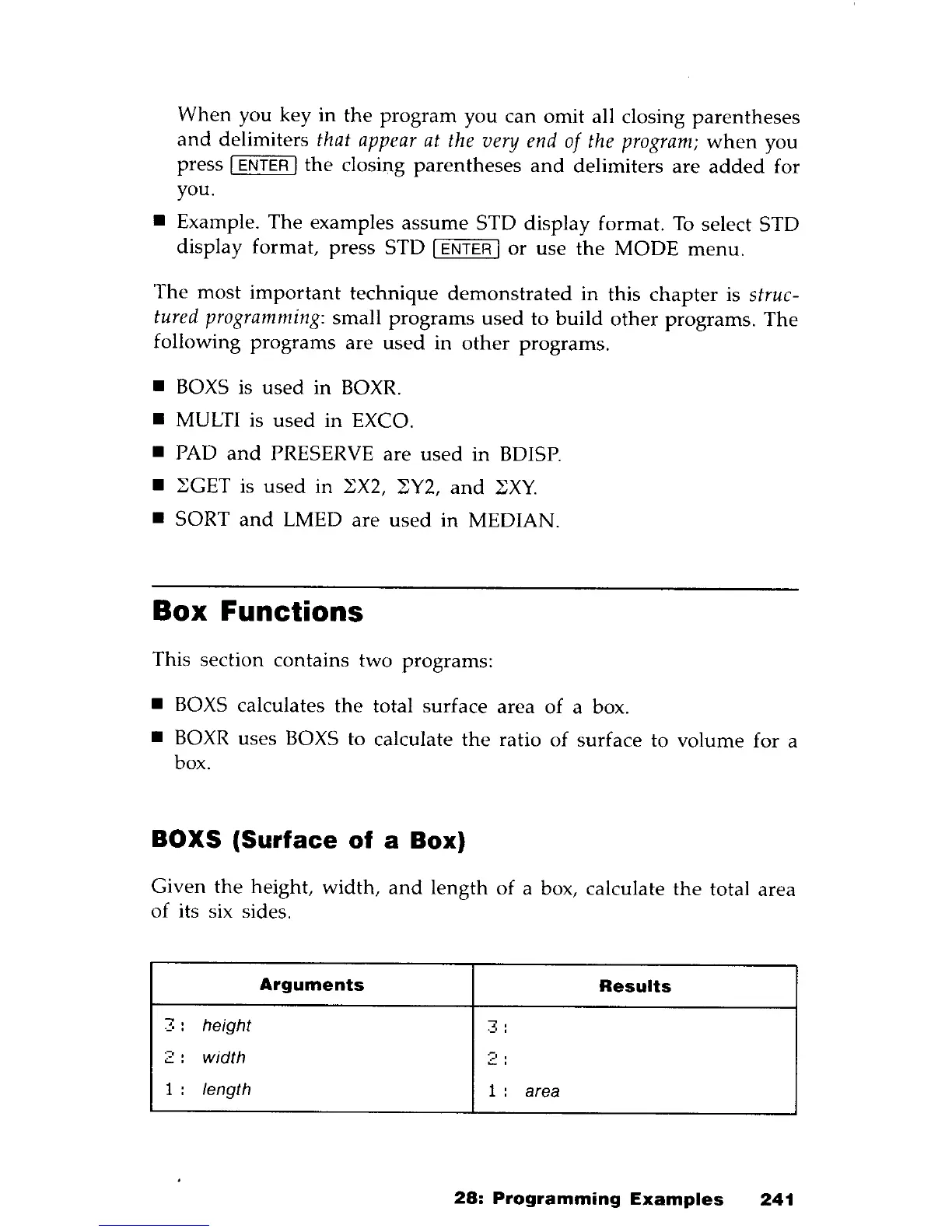 HP HP-28S - Box Functions; BOXS (Surface of a Box)