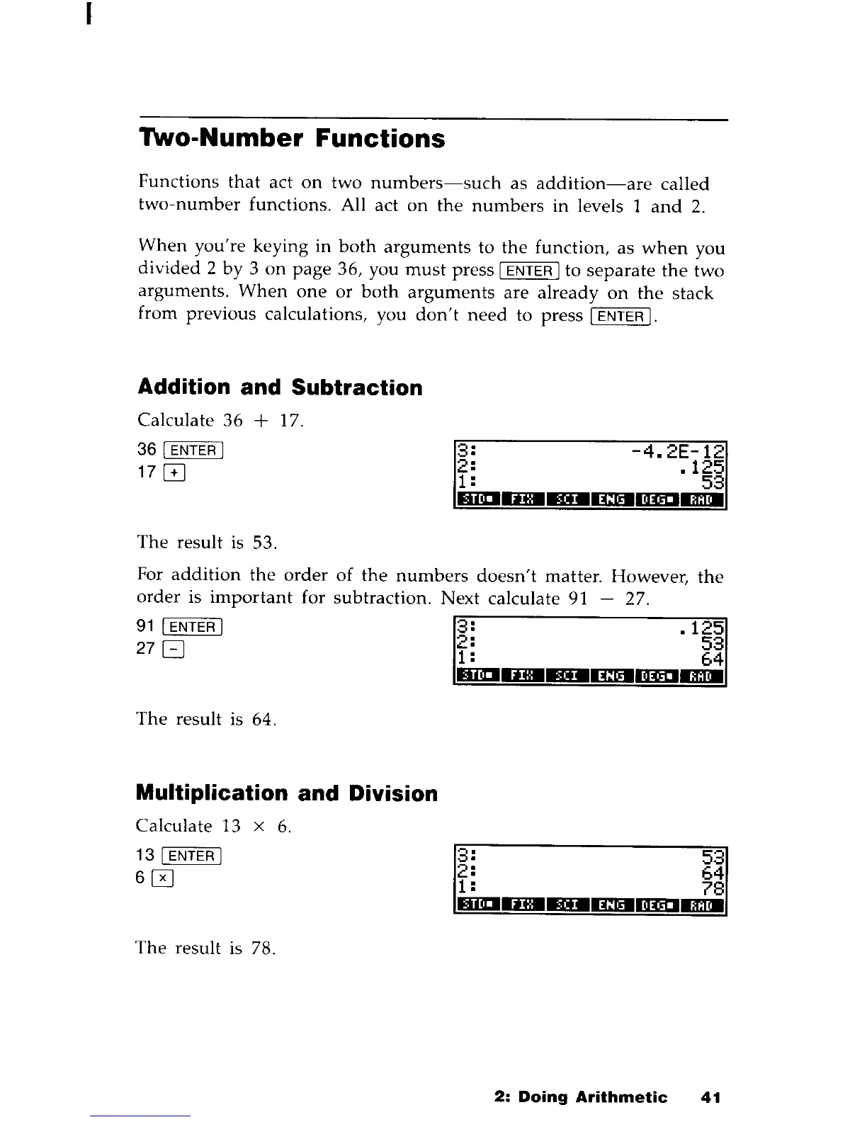 HP HP-28S - Two-Number Functions; Addition and Subtraction; Multiplication and Division