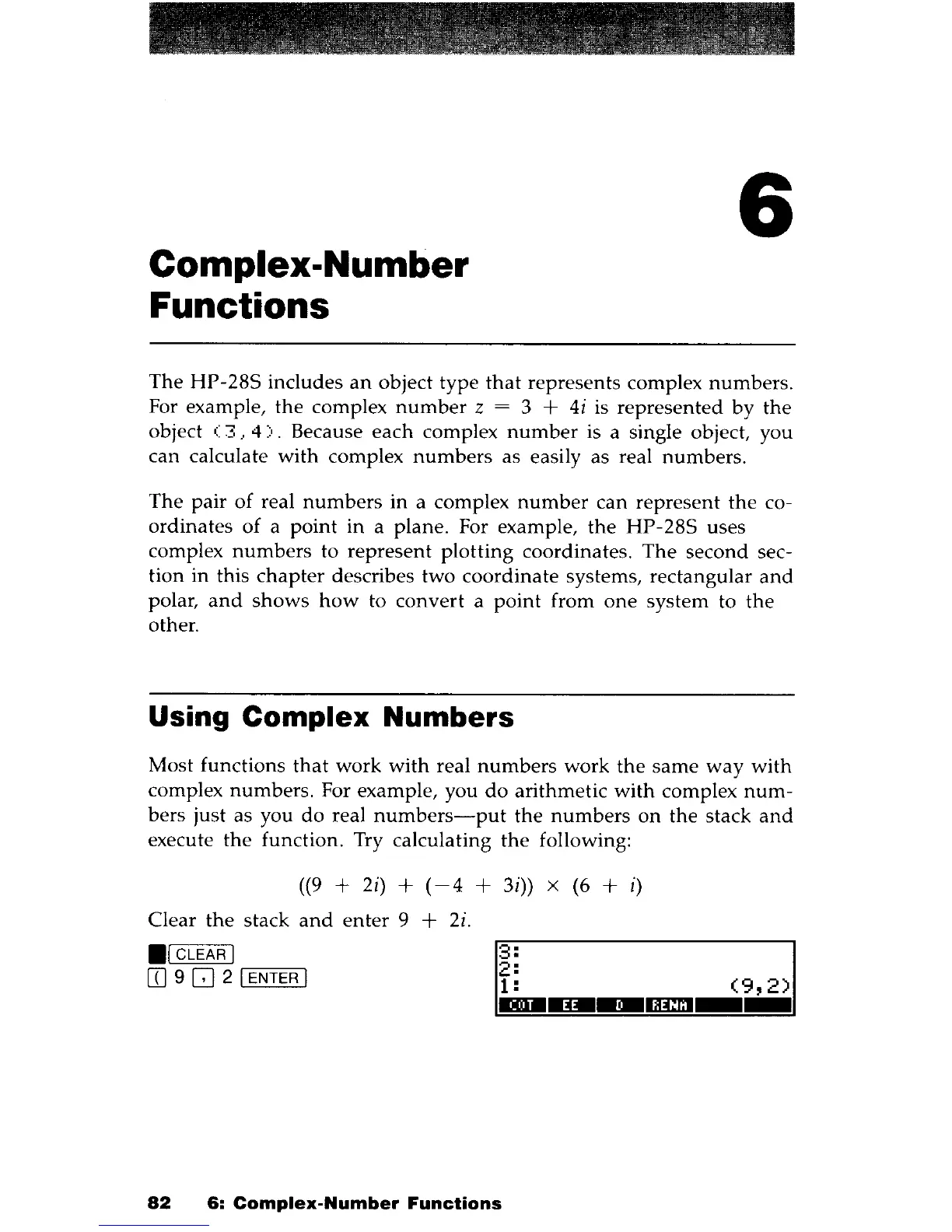 HP HP-28S - Complex-Number Functions; Using Complex Numbers