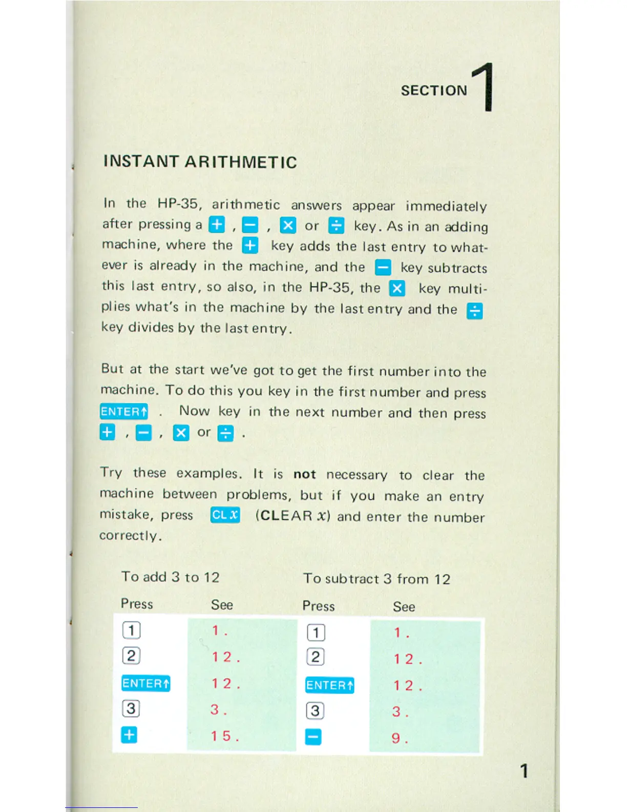 HP HP-35 - Core Operations and Functions; Basic Arithmetic Operations