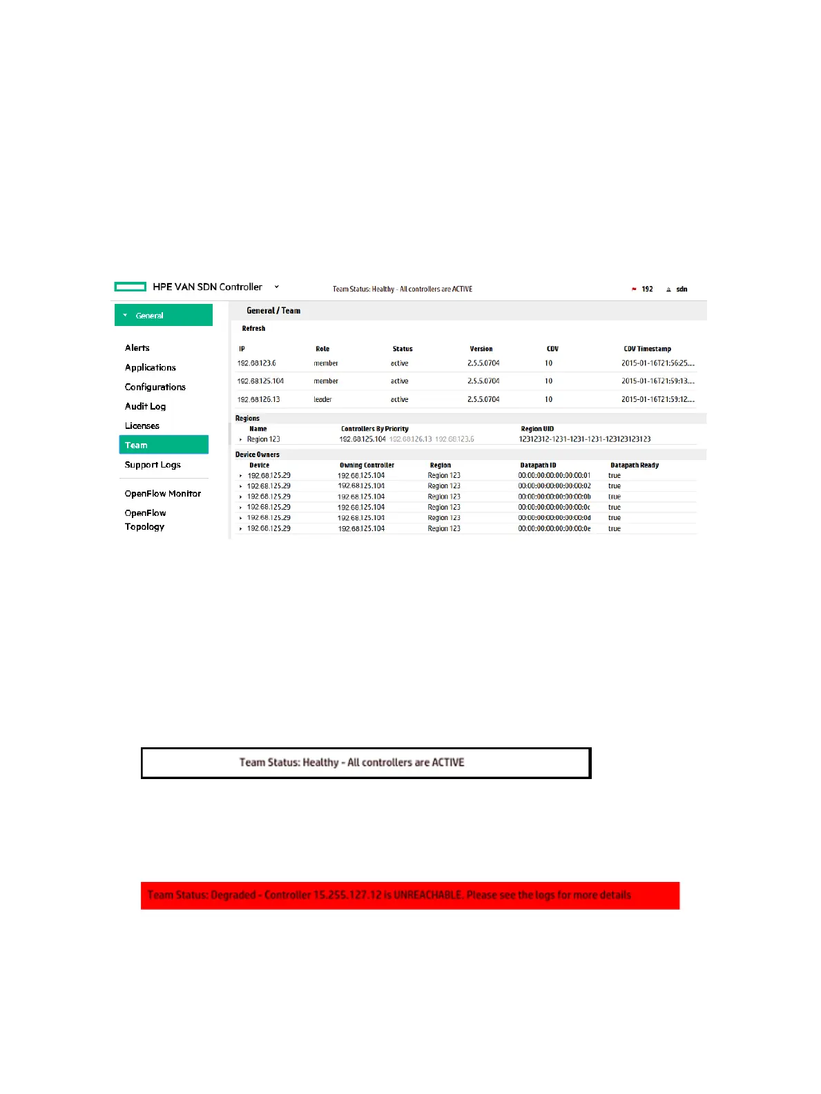 You can view your team and region configuration from the SDN Controller UI’s Team screen. To