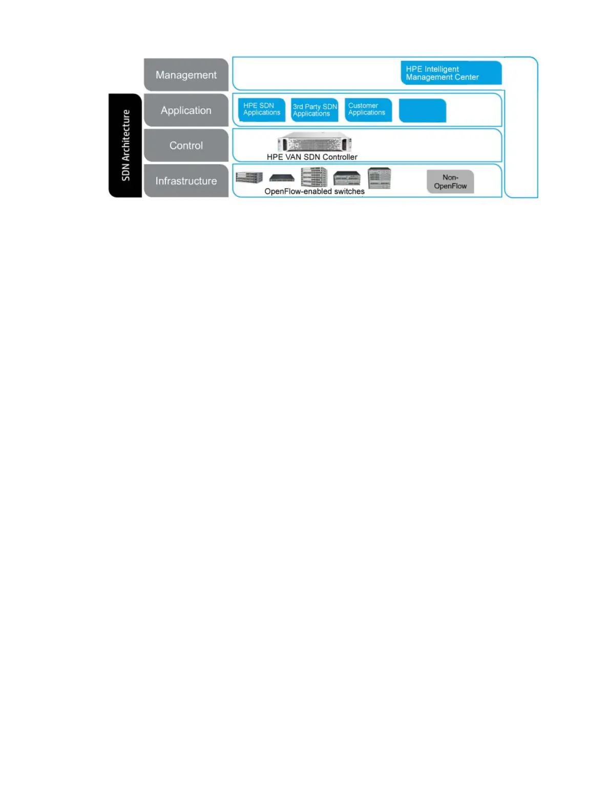 • Management. The HPE Intelligent Management Center (IMC) VAN SDN Manager software