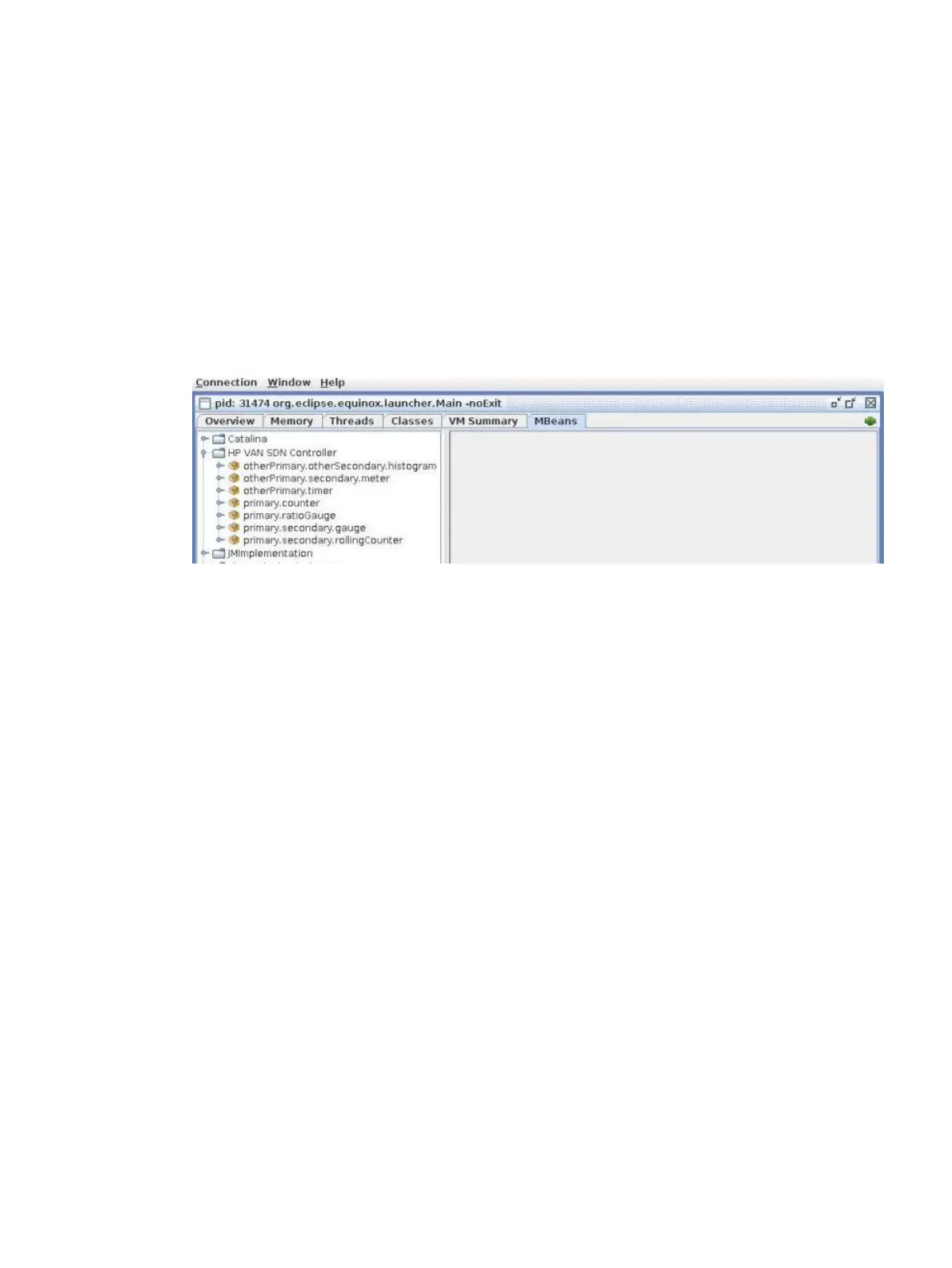 Figure 68 JConsole window displaying HPE VAN SDN Controller metrics