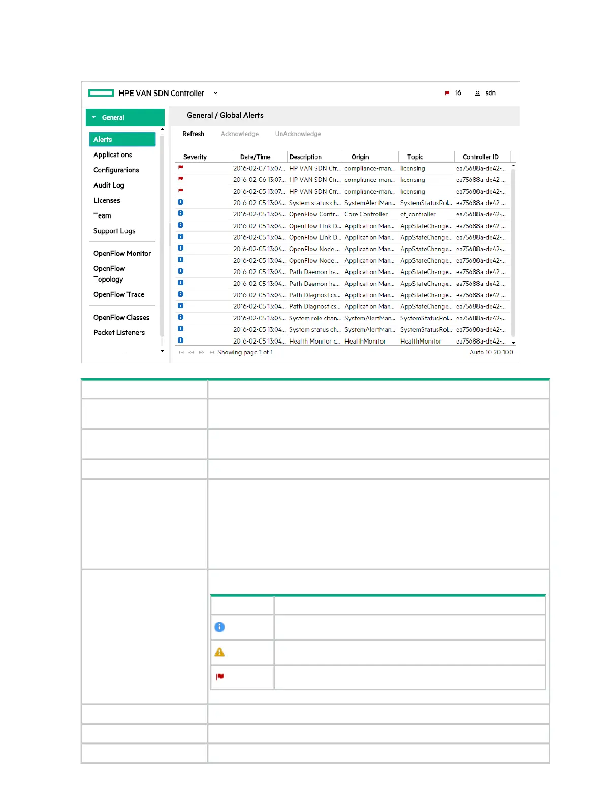 • The controller displays the selected alert in blue text. Click an alert to select it.