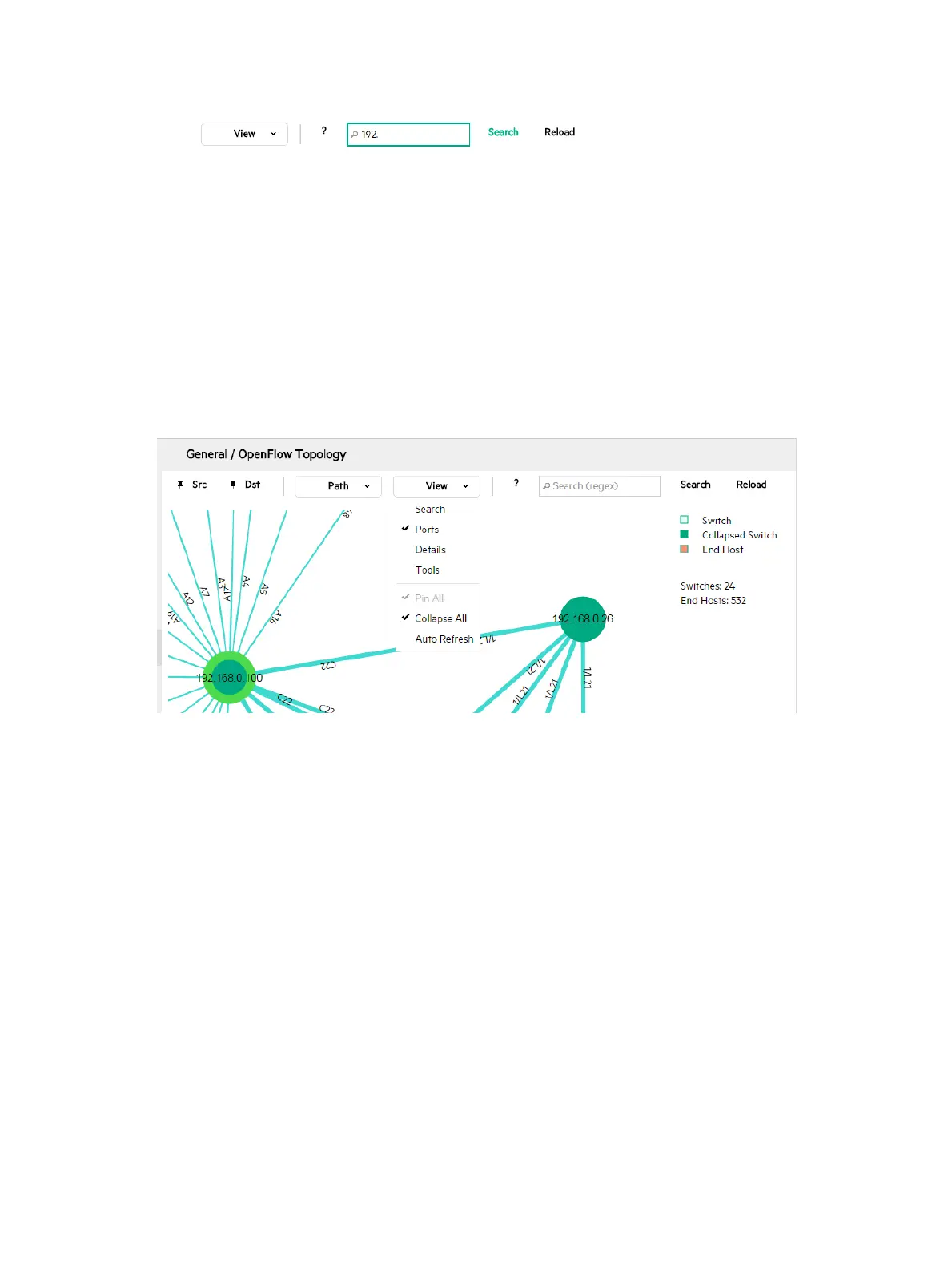the topology view. You can enter a regular expression for more complex searches.