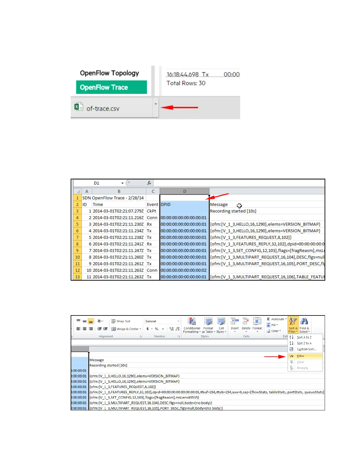 such as Microsoft Excel, that enables you to read the log messages and configure a filter.