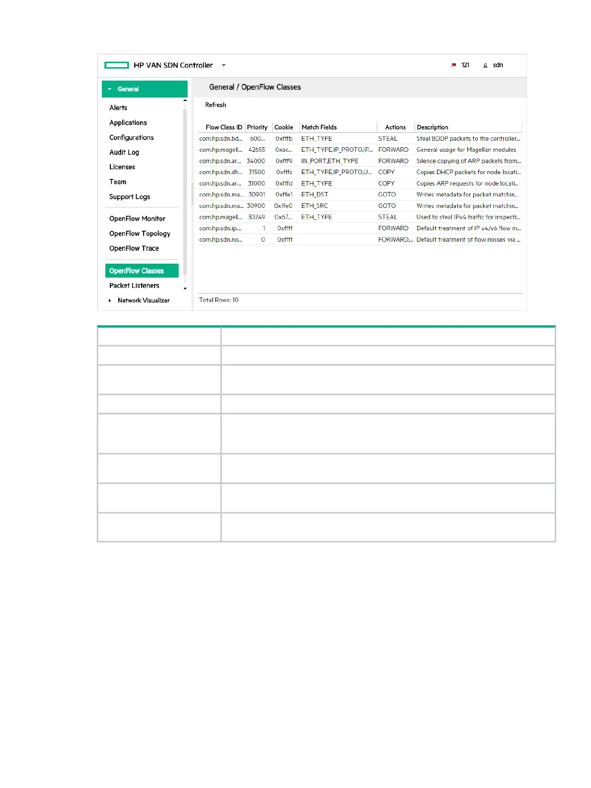 Figure 44 Example of OpenFlow classes screen