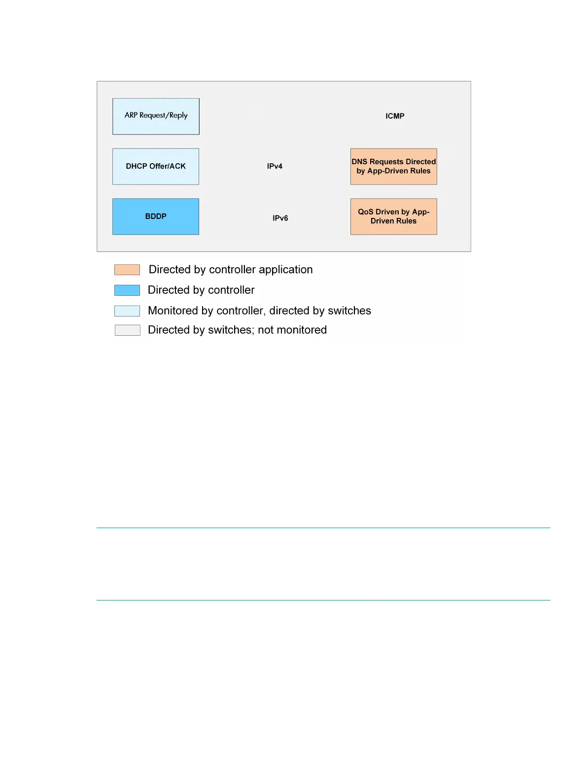 Packets in flows that the controller does not examine or direct are forwarded through normal