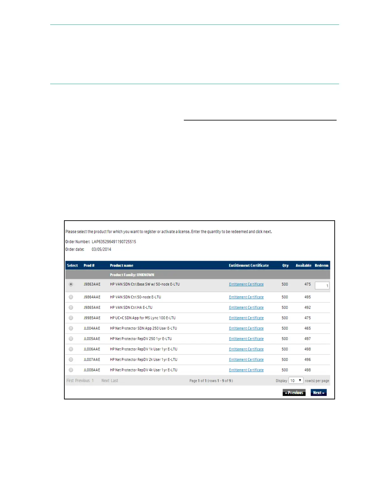 NOTE: If you are registering licenses in addition to the base controller license, Hewlett Packard